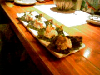 そんなんでしたが、映画の後に行ったお店"ござる"はお料理も美味しい、雰囲気も良いでオススメでしたので写真を・・・ウニと麦ご飯を韓国海苔で巻いて頂きます。以前2回ほど行こうとしてお客さんいっぱいで入れませんでしたので、3度目の正直でございます。行ってよかった!!